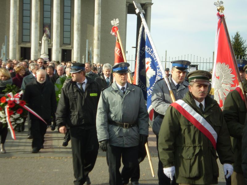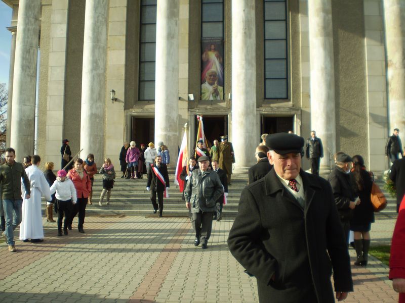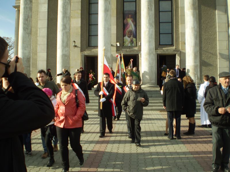 Uroczystości patriotyczne rozpoczął barwny przemarsz mieszkańców oraz delegacji pocztów sztandarowych wszystkich instytucji i organizacji spod budynku Starostwa Powiatowego do Nowego Kościoła na mszę świętą w intencji Ojczyzny. Kazanie wygłosił proboszcz Stanisław Cyran. Ksiądz proboszcz zwrócił uwagę na współczesne zagrożenia niepodległości Polski i utratę przez Polaków tożsamości narodowej.