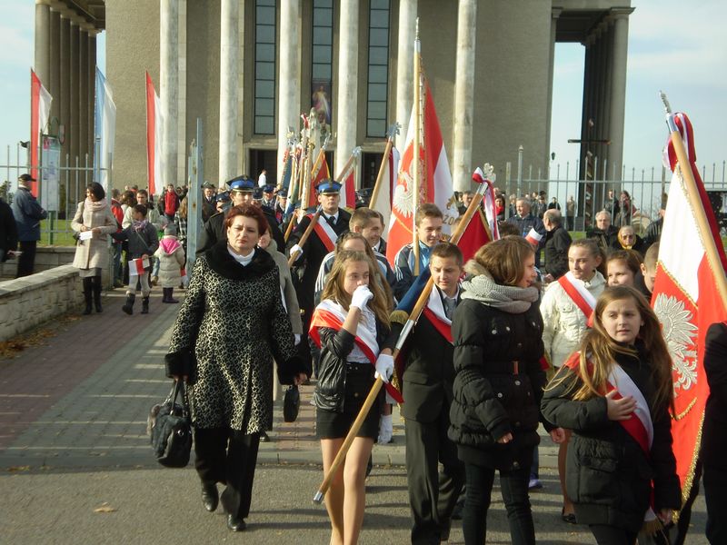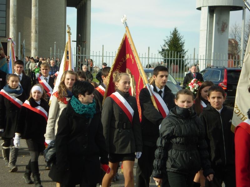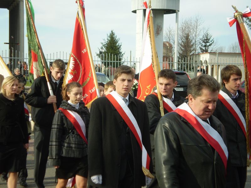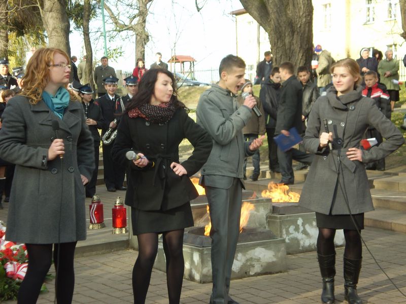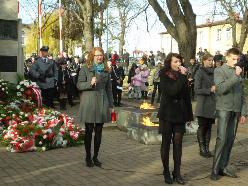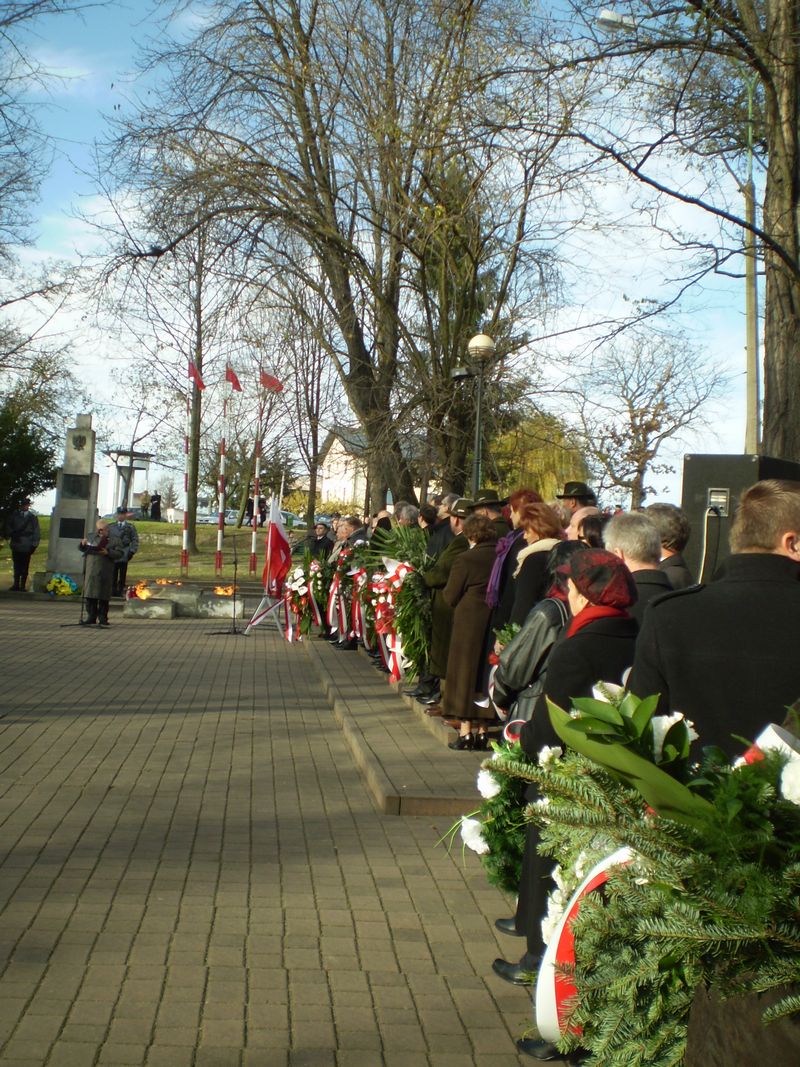 Z kościoła pochód z pocztami sztandarowymi przeszedł pod Pomnik Poległych w parku miejskim, gdzie odbyła się główna część uroczystości patriotycznych.