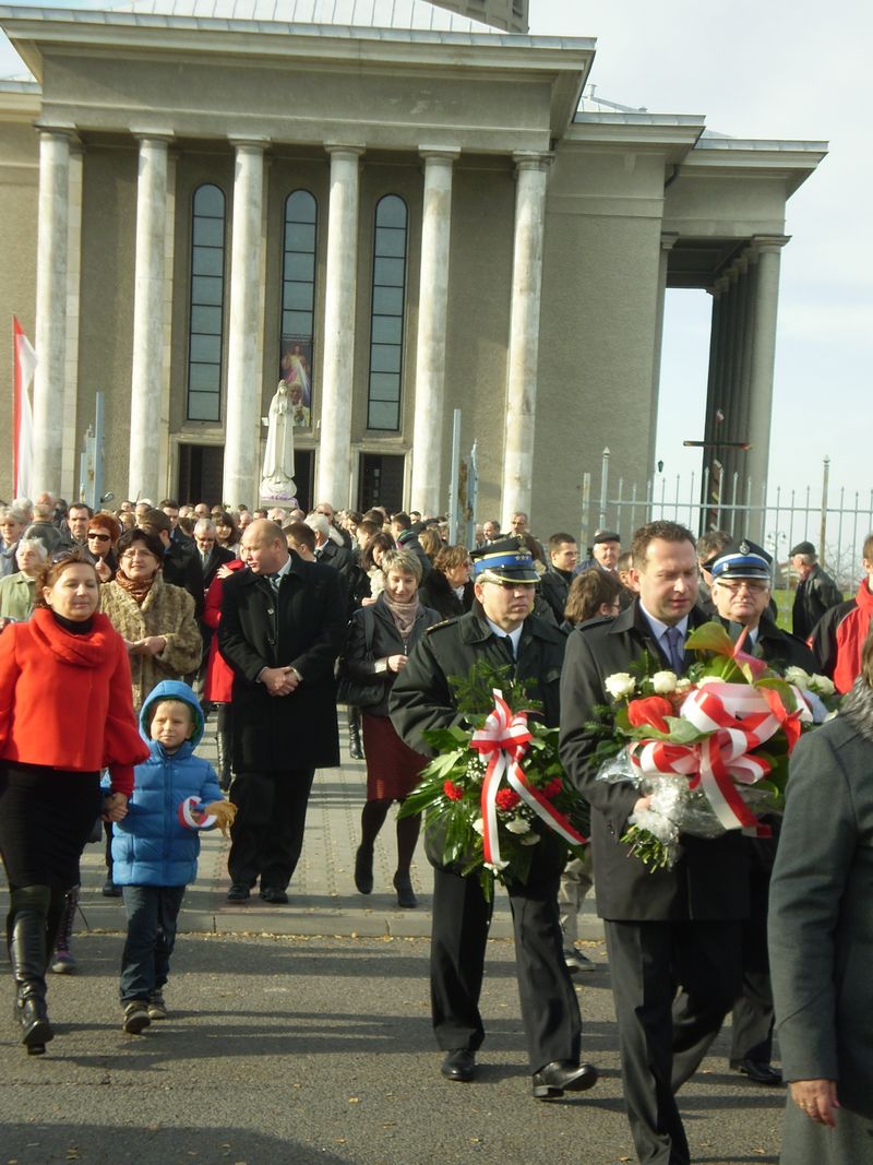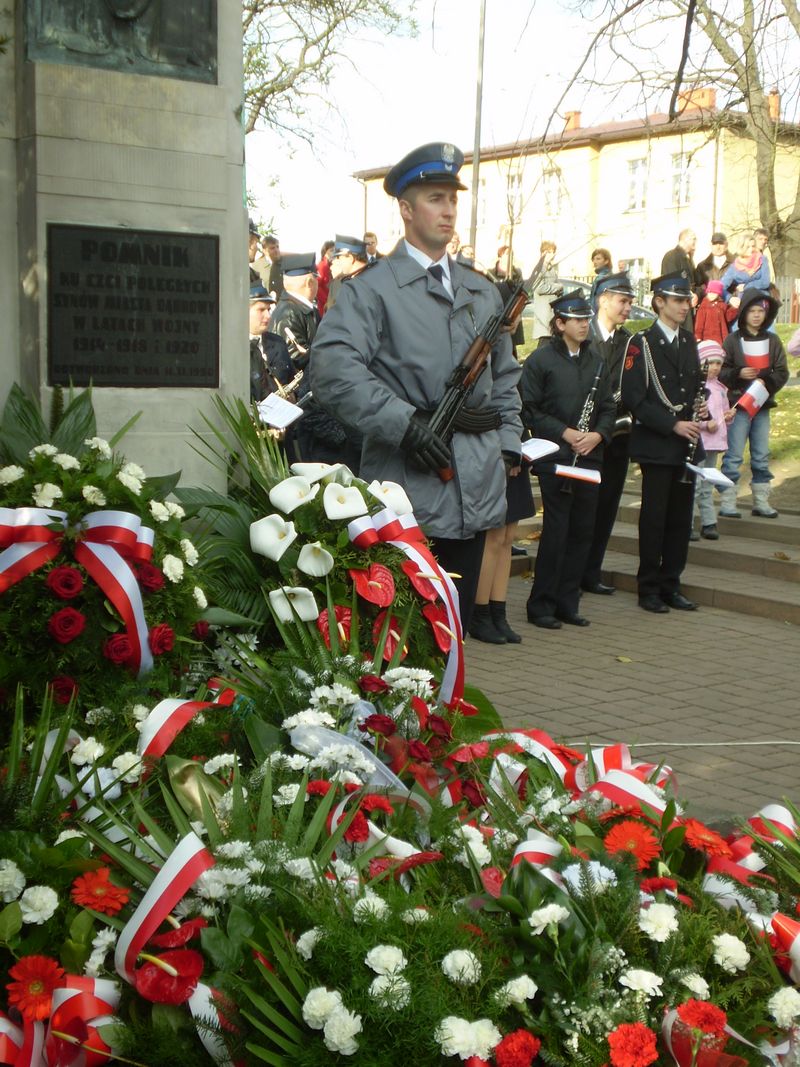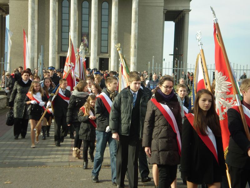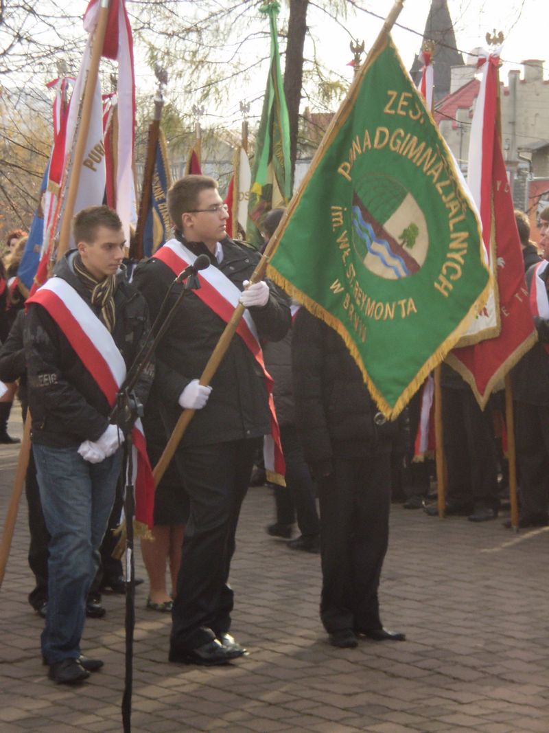Z kościoła pochód z pocztami sztandarowymi przeszedł pod Pomnik Poległych w parku miejskim, gdzie odbyła się główna część uroczystości patriotycznych.