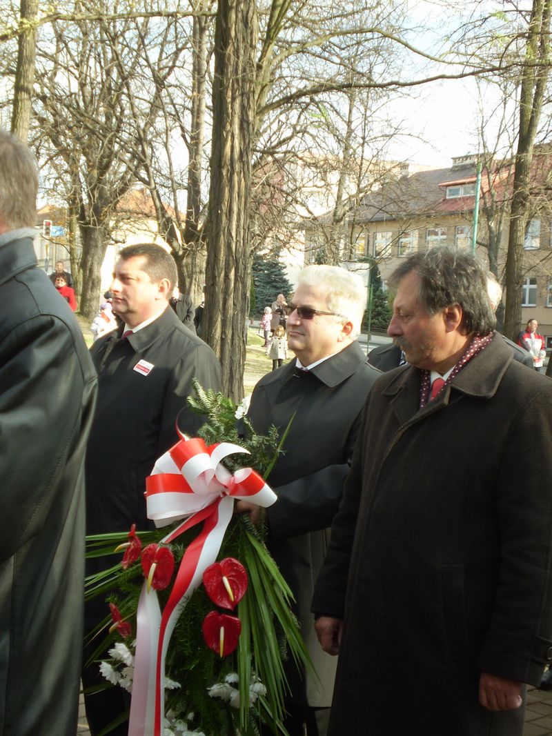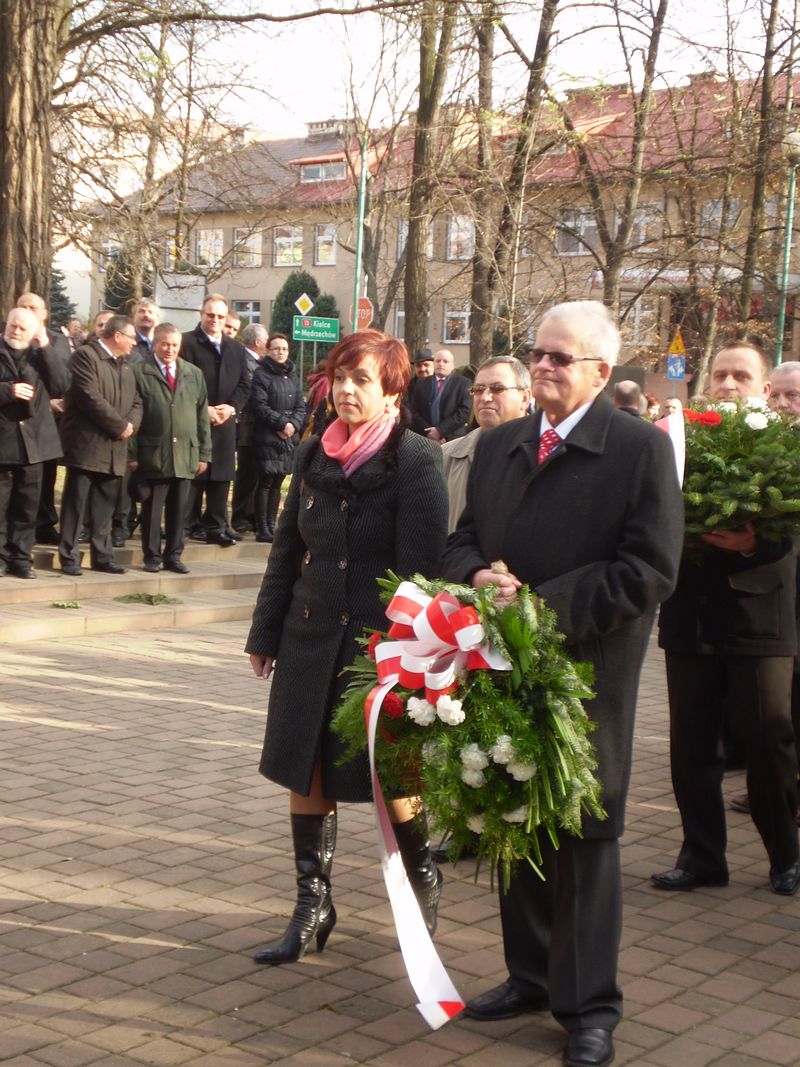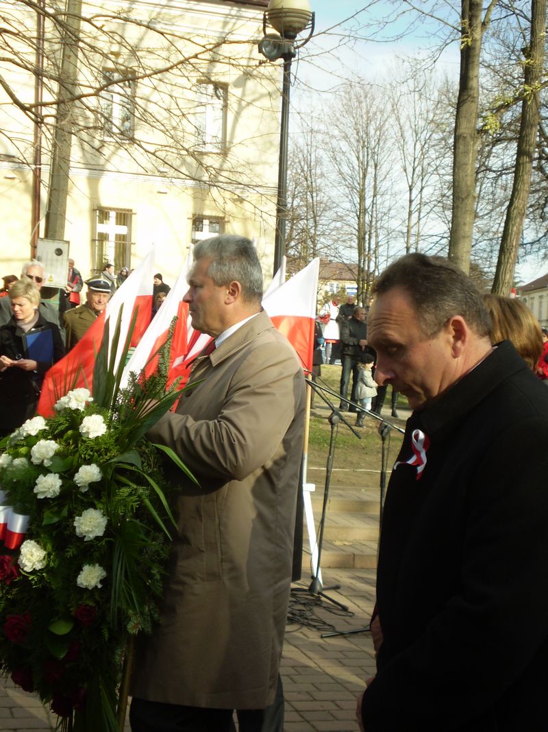 Tradycyjnie głos zabrał najpierw burmistrz, a następnie starosta. Stanisław Początek powitał przybyłych i podziękował wszystkim za uczestnictwo w obchodach. Tadeusz Kwiatkowski nawiązał najpierw do historii: – 94 lata temu, po 123 latach niewoli, Rzeczpospolita pojawiła się wreszcie na mapach Europy. (…) Dlatego spotkaliśmy się tutaj, by złożyć hołd tym, którzy walczyli o wolną Rzeczpospolitą. (…) Musimy dbać o to, aby wolność, którą odzyskaliśmy w 1918 r., była dobrze zagospodarowana (…) i, aby nasze uczucia patriotyczne były tak żywe, jak w 1918 r.