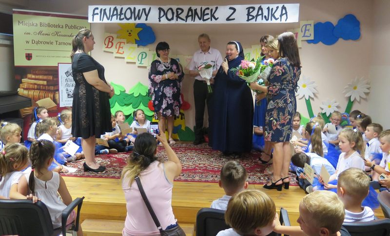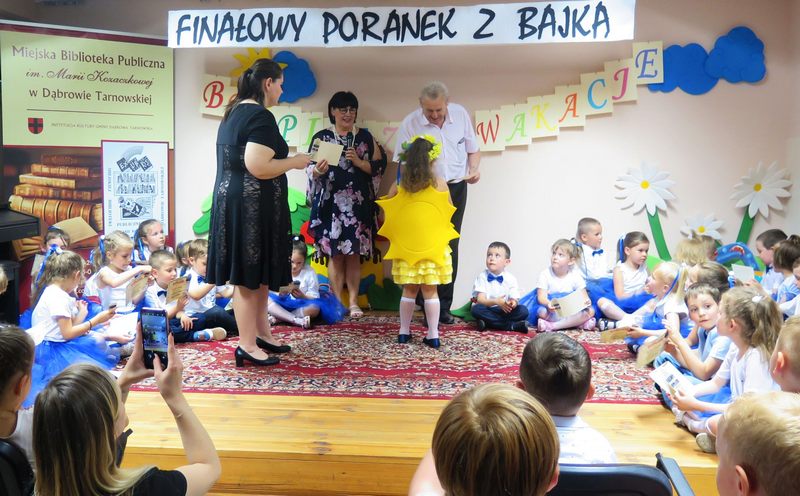 Oddział dla Dzieci Miejskiej Biblioteki Publicznej w Dąbrowie Tarnowskiej wspólnie z grupą „Biedroneczki” z Przedszkola Niepublicznego Ochronka im. św. Jana Pawła II w naszym mieście, uroczyście zakończył VI edycję akcji „Poranek z Bajką”.