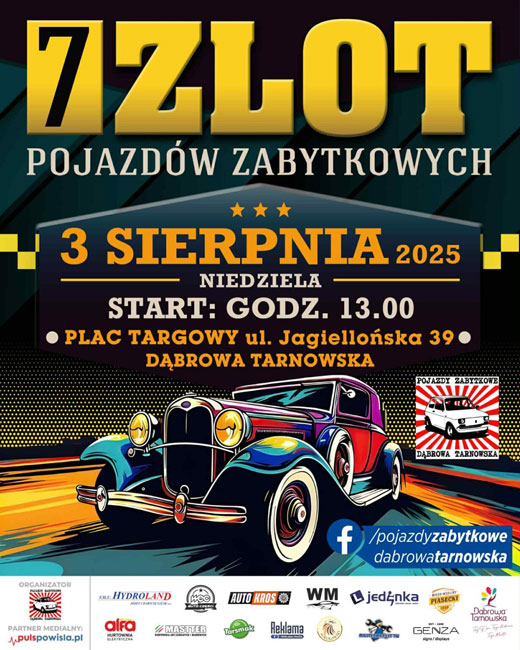 W niedzielę, 3 sierpnia br. na Placu targowym przy ul. Jagiellońskiej 39 w Dąbrowie Tarnowskiej odbędzie się VII Zlot Pojazdów Zabytkowych.