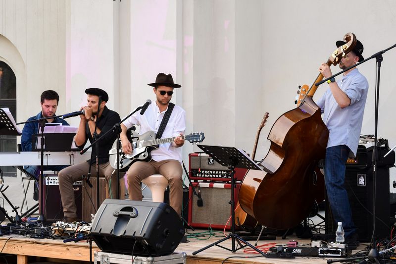 – To już ósma edycja Dąbrowskiej Nocy Bluesowej. Po pandemii szczególnie jesteśmy głodni gry i cieszymy się, że to wydarzenie doszło do skutku w tym roku i nie możemy się doczekać wyjścia na scenę. W tym roku zagrają dla nas młode gwiazdy dąbrowskiej sceny muzycznej, czyli Obywatele DT, później – jak zawsze – zagramy zespołem współorganizatorów Dąbrowskiej Nocy Bluesowej, z którymi zakładaliśmy to wydarzenie dziesięć lat temu, a na końcu wystąpi gwiazda: w tym roku Blues Menu. Miał być zespół „Szulerzy”, natomiast ze względów zdrowotnych wokalistki, nie mogli dzisiaj wystąpić. Na szczęście polecili nam inny zespół. Formuła tego wydarzenia zmieniała się przez lata. Na początku ewoluowało to z prostego Jam session i taki był koncept tego wydarzenia, natomiast później, przez lata, pojawiały się tutaj różne osoby, gwiazdy młodej sceny tarnowskiej czy też sceny lokalnej i w ten sposób dawaliśmy też szansę młodym artystom na występ przed szerszą publicznością. Kiedy zaczynaliśmy tę imprezę też byliśmy młodzi i znaleźliśmy wspaniałe miejsce – synagoga została wtedy wyremontowana i patrząc na ten plac, który ma niesamowity klimat, stwierdziliśmy, że musimy tutaj zrobić jakiś koncert, zagrać. I taki pomysł się zrodził: zebrać się, przyjść, zagrać utwory w stylu Jam session dąbrowskiego, a później – z roku na rok – przychodziło coraz więcej ludzi. Impreza była coraz mniej kameralna, natomiast zachowywała swój mały, lokalny klimat i to chyba najważniejsze w tym wszystkim, by dzielić się tą muzyką. W przeciwieństwie do Dni Dąbrowy, gdzie przyjeżdżały całe masy ludzi na gwiazdę wieczoru, u nas zwykle tych gwiazd nie było, natomiast przychodzili do nas raczej ludzie, którzy chcieli się cieszyć dobrą muzyką – powiedział Sebastian Lechowicz, inicjator i twórca Dąbrowskiej Nocy Bluesowej, lider zespołu Ci Co Wcześniej.