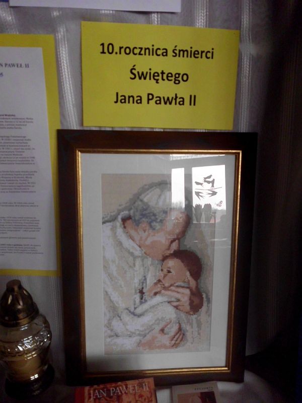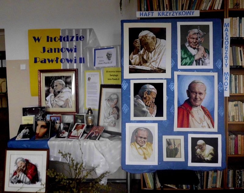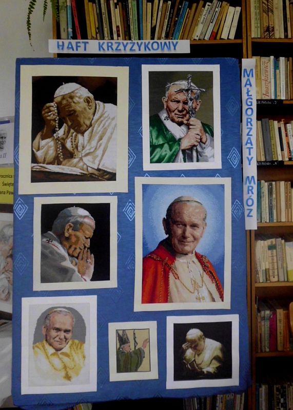 Z tej okazji Filia Biblioteczna w Szarwarku włączając się w obchody zorganizowała wystawę haftów krzyżykowych Małgorzaty Mróz.