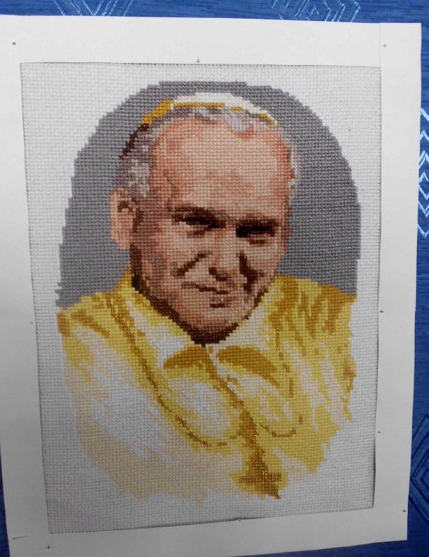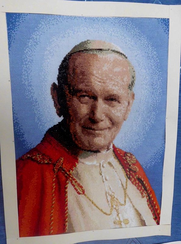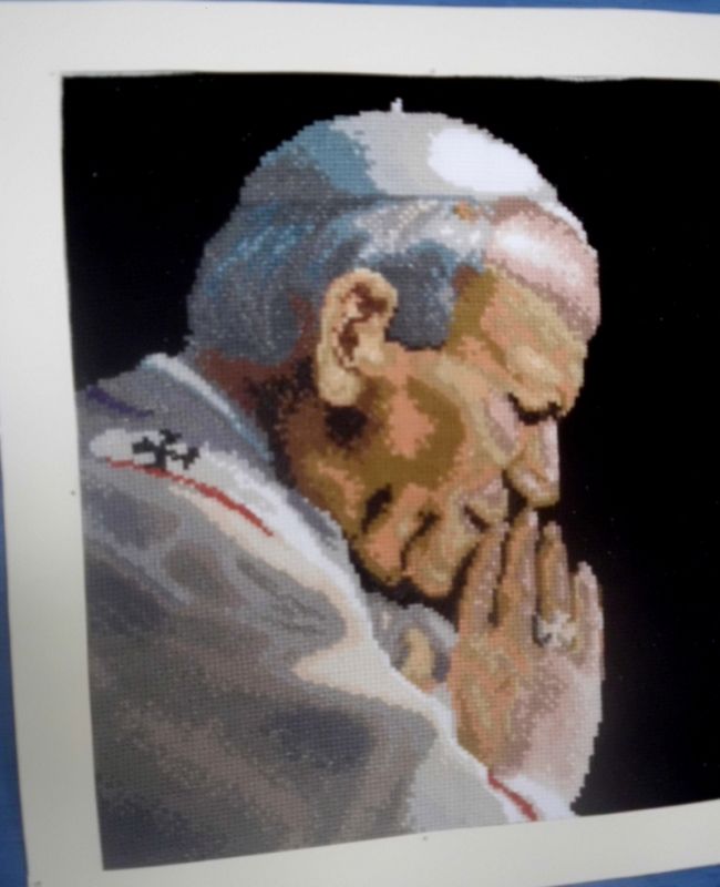 Małgorzata Mróz mieszka w Szarwarku i pracuje jako pielęgniarka w Zespole Opieki Zdrowotnej w Dąbrowie Tarnowskiej. Jej pasją oprócz czytania książek jest haft krzyżykowy, którym zajmuje się od dzieciństwa. Ten rodzaj sztuki stanowi dla pani Małgorzaty rodzaj oderwania się od codziennych obowiązków, daje wytchnienie i spokój. W swojej kolekcji posiada kilkadziesiąt obrazów o różnej tematyce, wśród których znajdują się te przedstawiające postać papieża Polaka. Pani Małgorzata haftuje je z okazji ważnych uroczystości i wydarzeń związanych z Jego osobą, gdyż jak twierdzi, najbardziej lubi wykonywać portrety Jana Pawła II, do których ma wielki sentyment, szczególnie portret z beatyfikacji i kanonizacji.