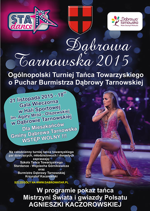 Na turniej tańca organizowany przez Szkołę Tańca Stardance zapraszają 21 listopada br. – właściciel szkoły Wojciech Górnikiewicz i Burmistrz Dąbrowy Tarnowskiej Krzysztof Kaczmarski.
