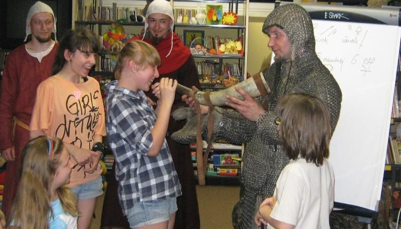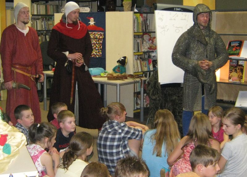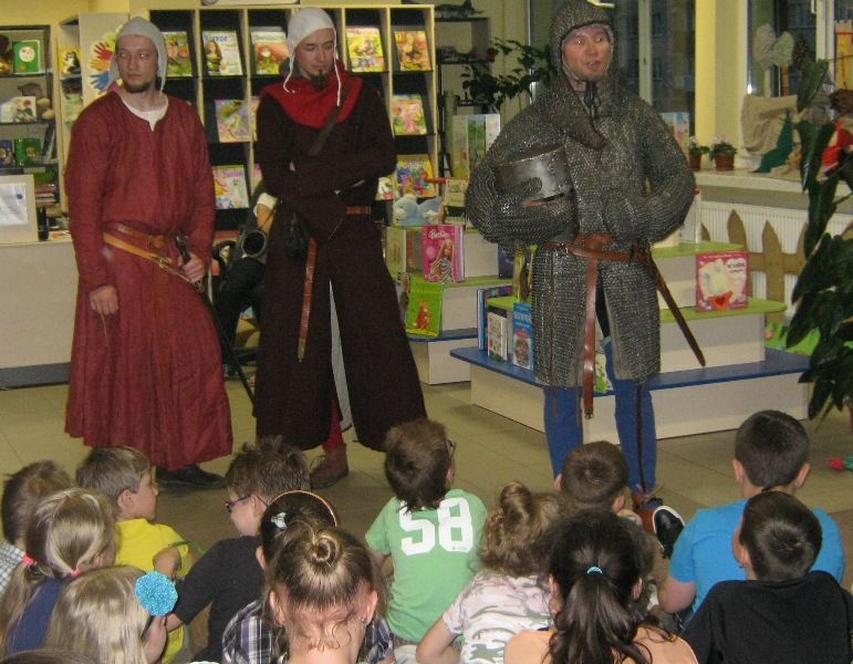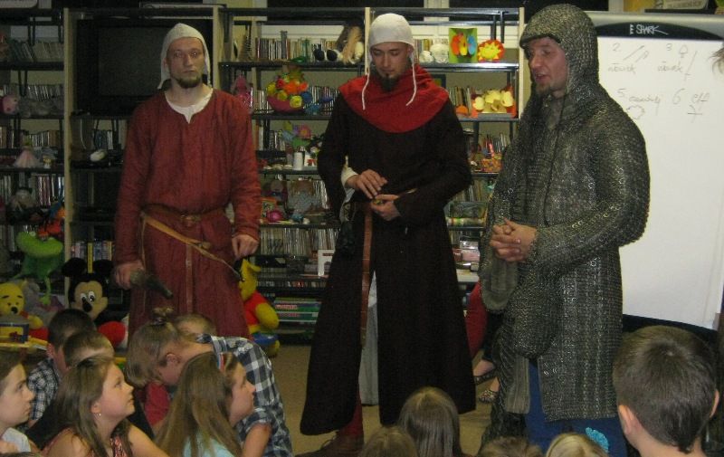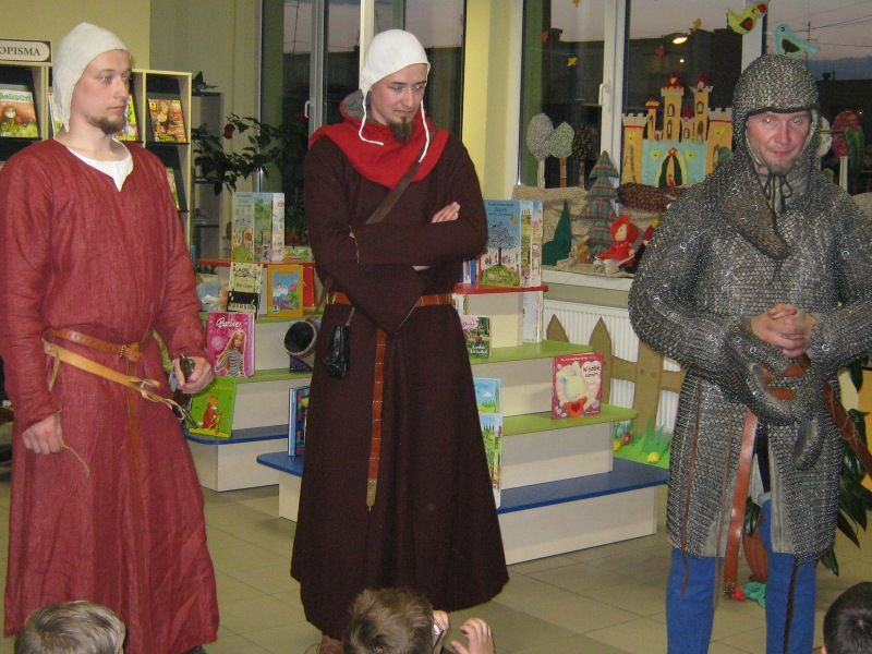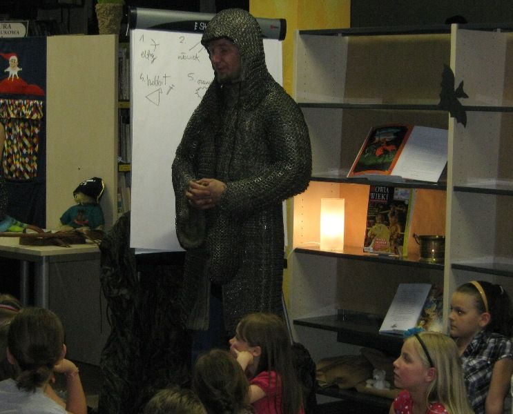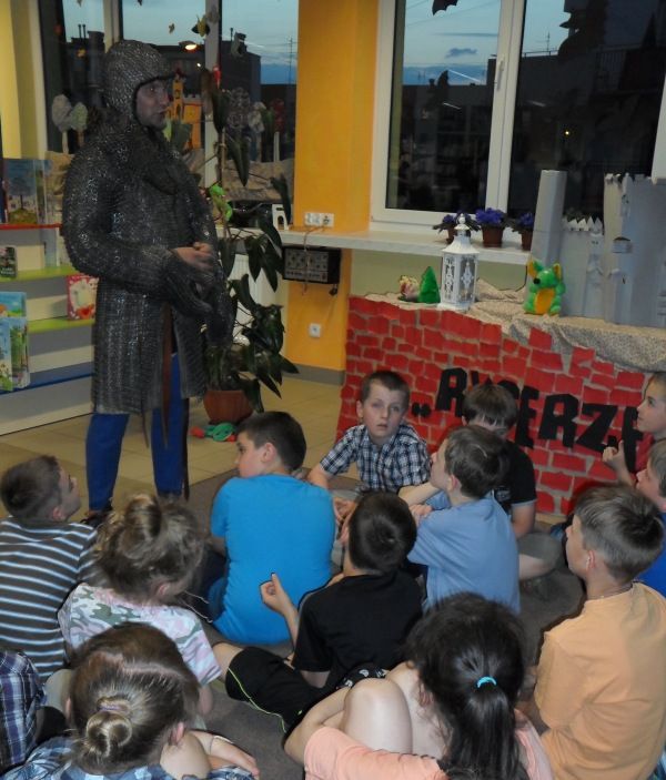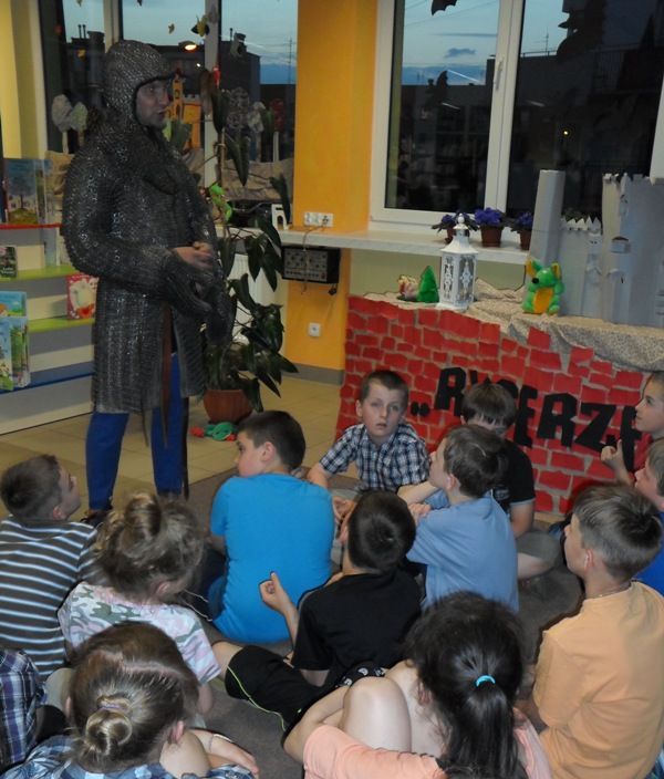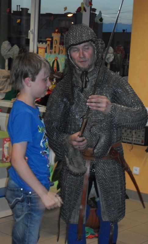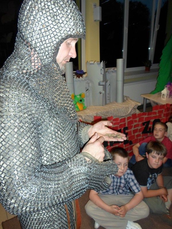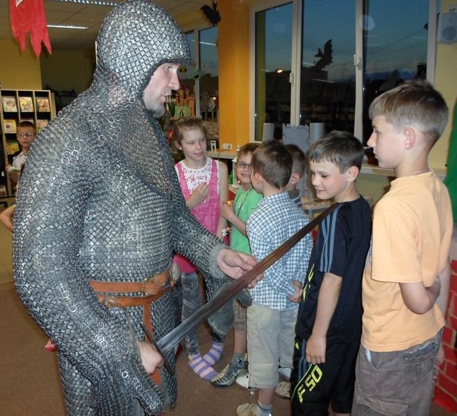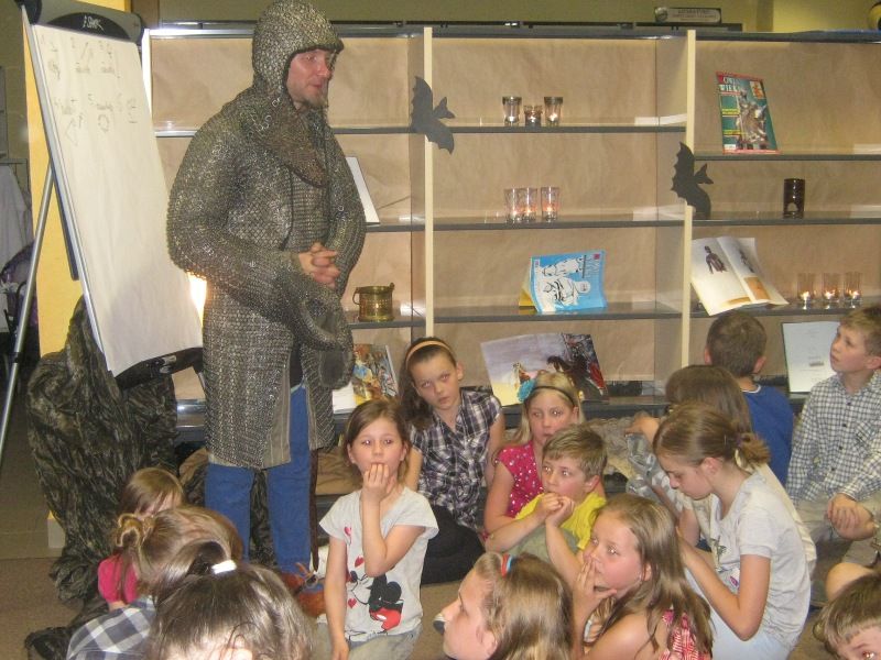 W dobranej scenerii w sposób bardzo fachowy w klimat życia i ubioru rycerstwa z tej epoki wtajemniczył uczestników nocy dowódca bractwa, a także nauczyciel w Publicznej Szkole Podstawowej nr 2 w naszym mieście Sławomir Bator. W czasie historycznej gawędy wielką atrakcją była przymiarka repliki rycerskiego hełmu dowódcy bractwa. W następnej kolejności rycerze przeprowadzili grę fabularną polegającą na złapaniu strasznego smoka.