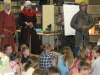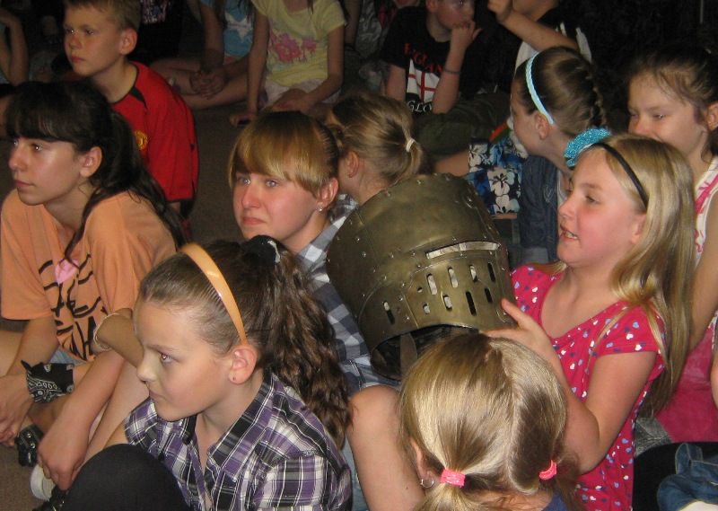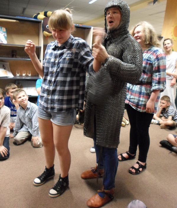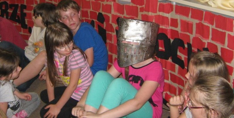 Wszyscy mimo późnej pory z wielkim zapałem włączyli się do fantastycznej gry. Oj, oj trzeba było bardzo rozważać pewne sytuacje, aby pokonać okropnego gada. W końcu ku uciesze wszystkich o godzinie 22:00 smok został złapany, a nasi goście po słodkim poczęstunku powrócili pełni wrażeń do domu. To wspaniałe spotkanie z rycerzami na pewno pozostanie dzieciom na dłużej w pamięci.