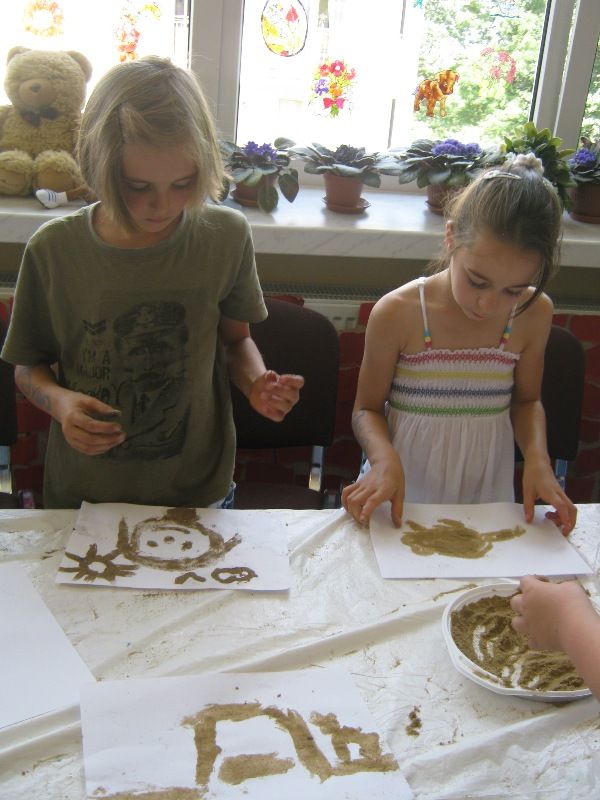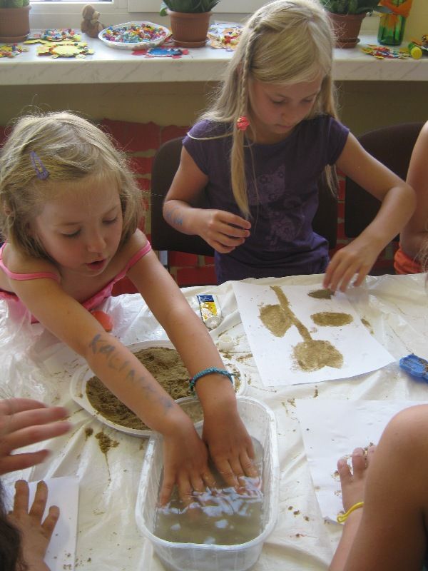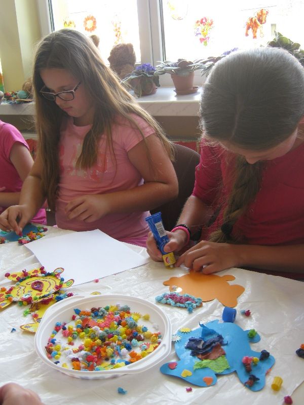 Prace młodych artystów utworzone są w różnych technikach i o różnej tematyce, od piaskowych obrazków poprzez obrazki malowane palcami po kolorowe rybki.