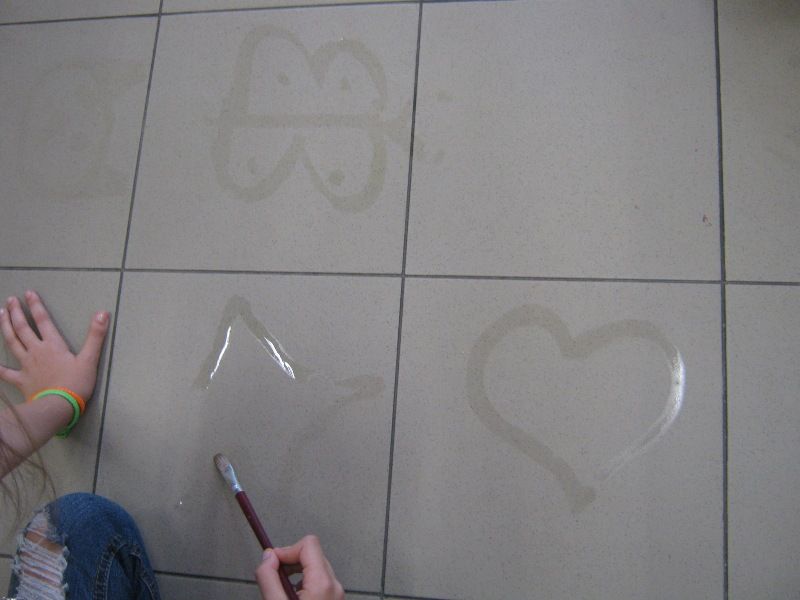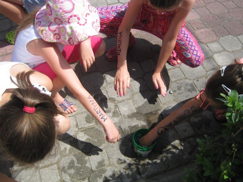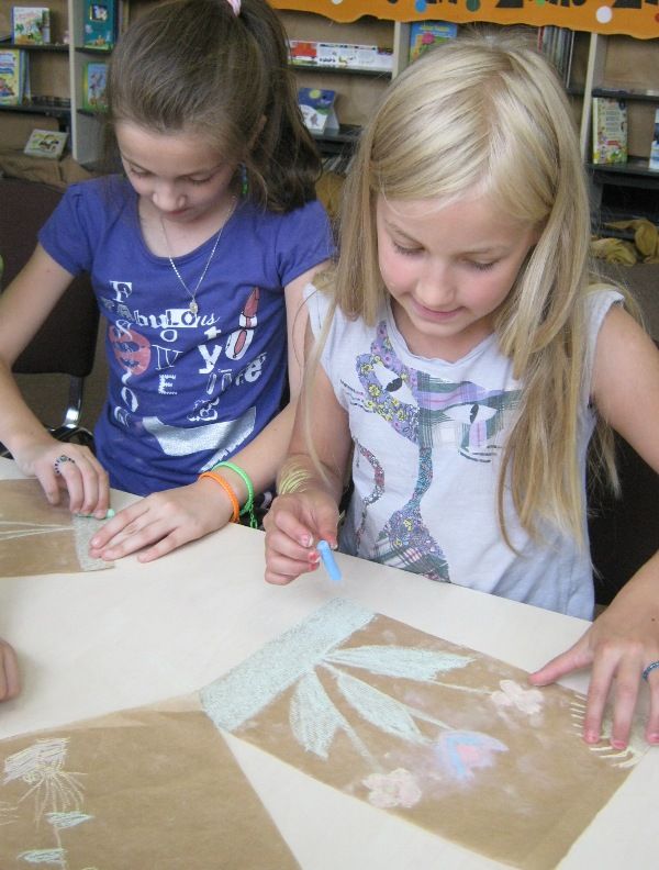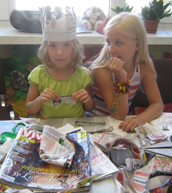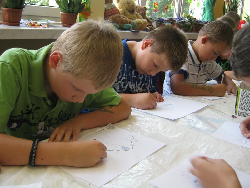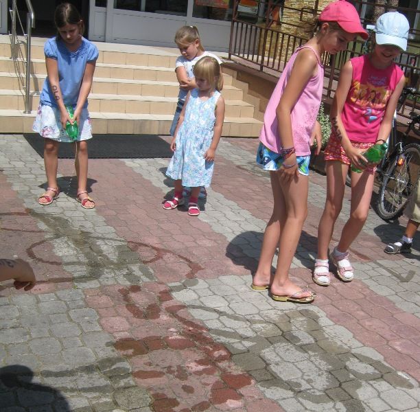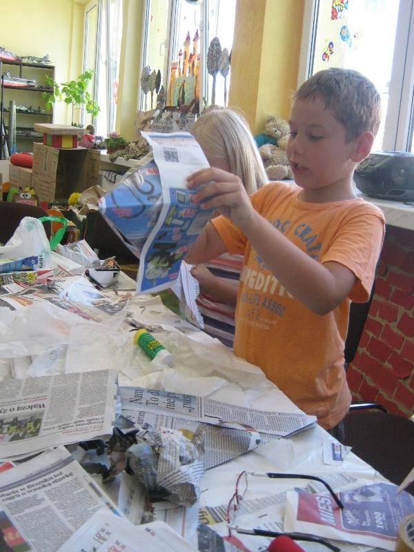 Są także niezwykłe dekoracje z suszonych kwiatów, które będą przypominać lato, nawet w śnieżne i mroźne dni. Powstały też nietrwałe prace, ale równie piękne. Były to wodne rysunki malowane na płytkach chodnikowych przed budynkiem biblioteki, jak i tych podłogowych wewnątrz sali. Wykonywanie tych dzieł sprawiło dzieciom wielką frajdę, nie jest bowiem codzienną sprawą babranie się w wodzie, mokrym piasku, też rwanie gazet, brudzenie rąk farbami itp. A przecież z tych „brudnych” czynności powstały „plastyczne wymyślanki”, które cieszą oko nawet dorosłych.