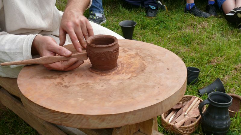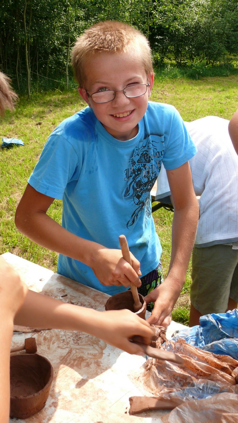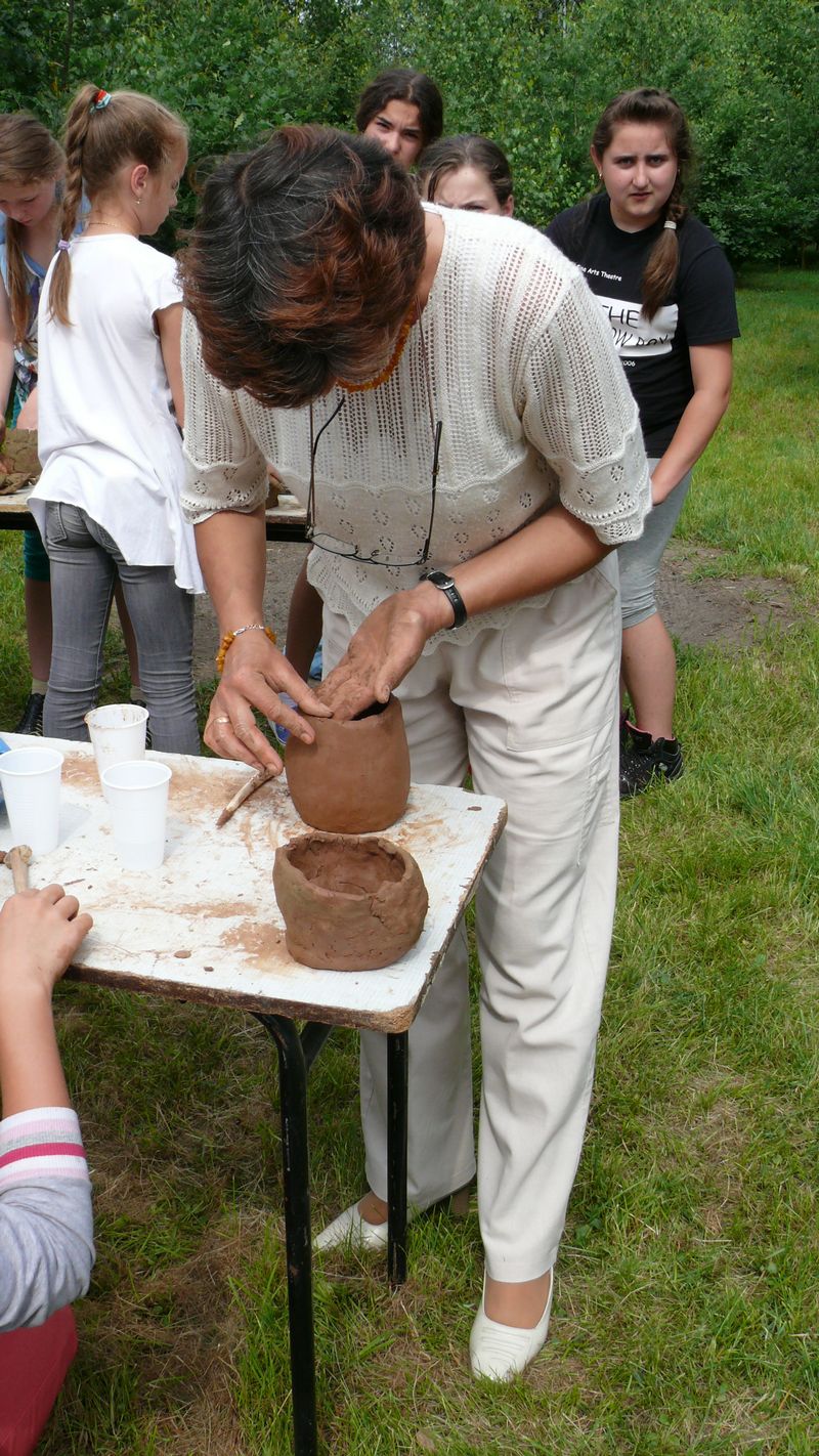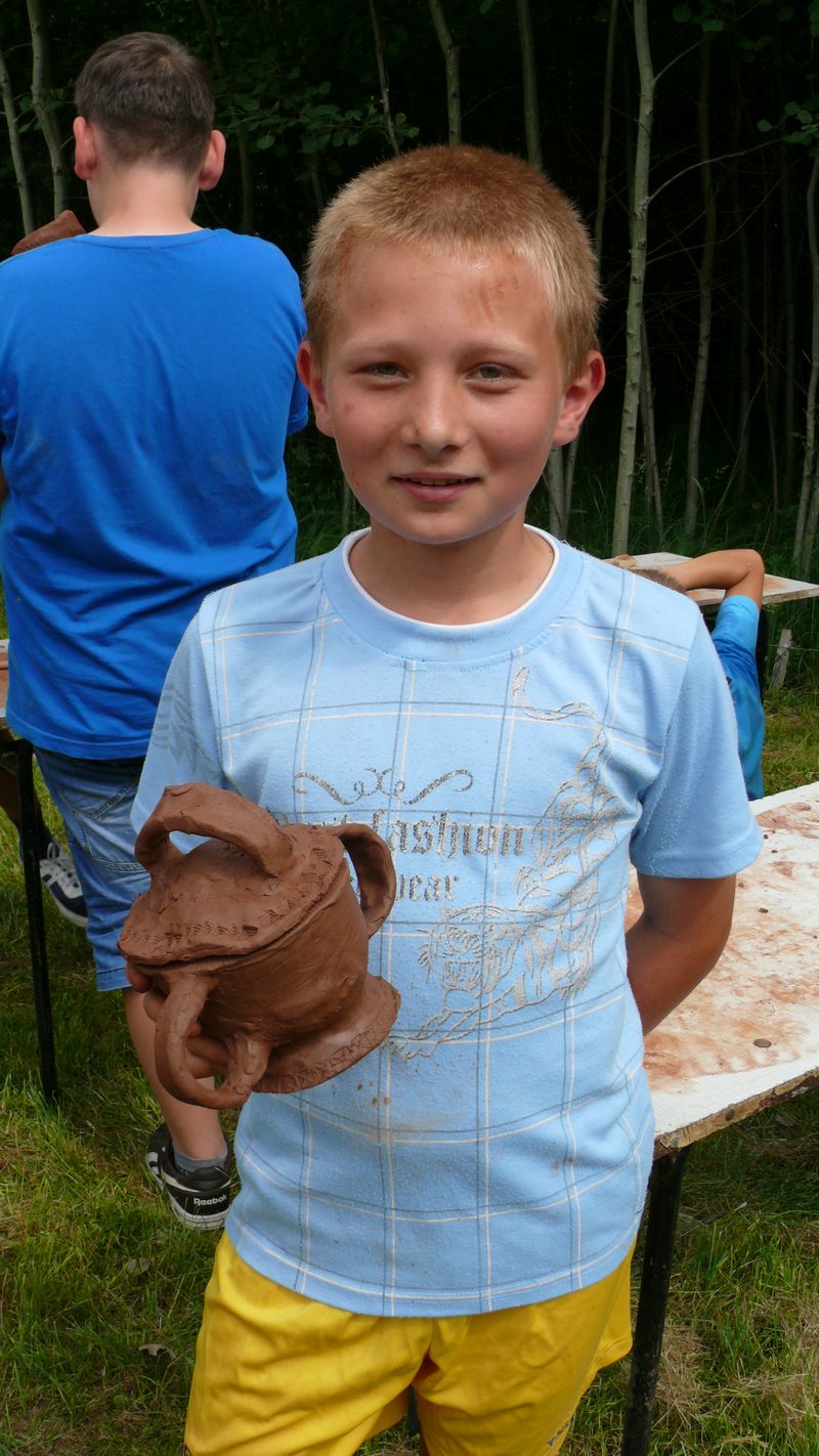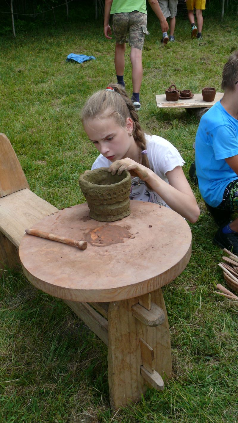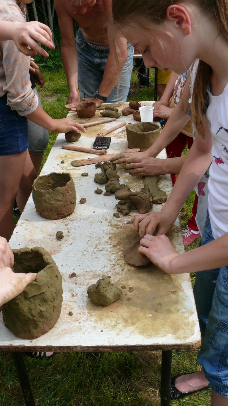 Na lekcje w plenerze przybyło 20 uczestników z klas 5a i 5b, którzy po okiem instruktora własnoręcznie kopiowali średniowieczne naczynia by następnie zabrać je na pamiątkę do domu. Można było też posłuchać prelekcji, obejrzeć różne gotowe wyroby oraz pokaz toczenia naczynia na kole.