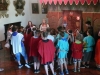 Młodzież z Olesna i Pilczy Żelichowskiej dowiedziała się czym są herby i jaką rolę spełniały. Prowadzący zajęcia przywitali gości w pięknych strojach Kronikarza i Herolda, a dzieci założyły ubiory dam dworu i rycerzy.