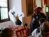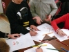 Wędrując po niepowtarzalnych wnętrzach zamkowych mogły odnajdywać herby zamieszkujących je rodów na chorągwiach, obrazach i kamiennych detalach. Poziom przyswojenia informacji sprawdzono w formie quizu składającego się z szeregu rebusów kryjących nazwy herbów, oraz tablicy, na której trzeba było je przyporządkować do kopii drzewa genealogicznego mieszkańców zamku. Dzięki aktywnemu uczestnictwu w warsztatach wszystkim grupom udało się bezbłędnie rozwiązać zadania. Ostatnim etapem było stworzenie własnego herbu, wykorzystując do tego nabytą wiedzę, przygotowane materiały rysownicze i własną wyobraźnię. Na zakończenie opiekunom poszczególnych grup Herold wręczył stosowny certyfikat potwierdzający zaliczenie kursu czeladniczego przygotowującego do pełnienia w przyszłości zadań herolda lub kronikarza.