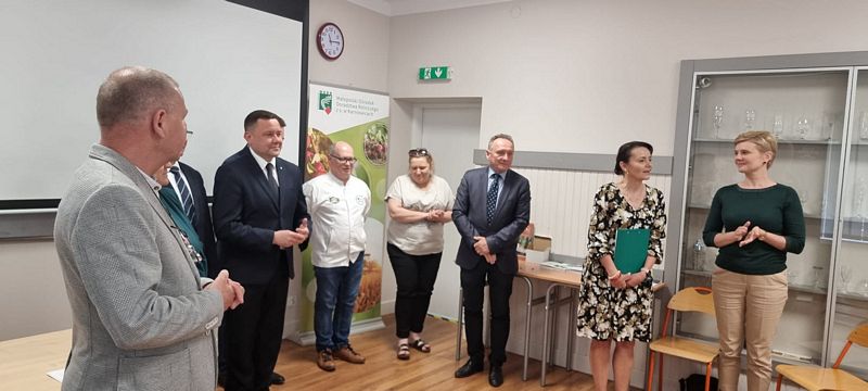 – Z panem dyrektorem przyjęliśmy taką zasadę, że koniecznie musimy mieć w szkole w powiecie profesjonalną pracownię gastronomiczną. Wszystko dynamicznie się zmienia, również w kuchni, więc cały proces inwestycyjny i zakup powodował, że to trwało kilka lat. Na pewno będziemy na bieżąco, jeżeli będzie taka potrzeba, modernizować, ale – jak pani Ania Morawiec wspomniała, mamy tutaj ogromne możliwości i dzięki gościnności pana dyrektora będziemy bardzo aktywni w temacie dziedzictwa kulinarnego – zresztą powiat dąbrowski należy do jednych z największych obszarów wiejskich łącznie z obszarem proszowickim i Województwem Małopolskim. Nasze stowarzyszenie jest też bardzo aktywne. Realizujemy szereg projektów wymiany doświadczeń, promocje tego wszystkiego, co w Małopolsce dobre i smaczne – mówił starosta dąbrowski, Lesław Wieczorek.