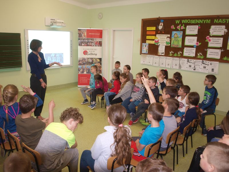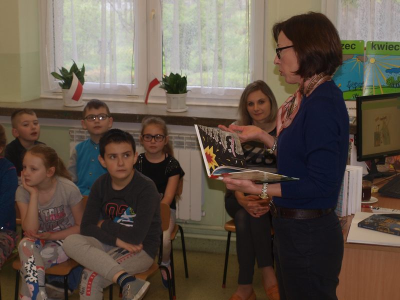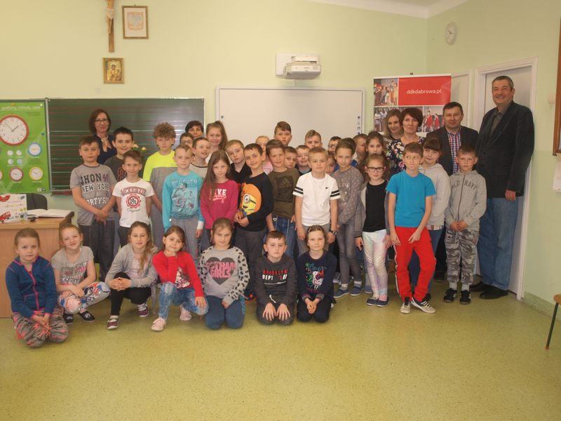 Autorkę prezentowanych książek dla dzieci powitali: Bogusław Marek – dyrektor szkoły i Paweł Chojnowski – dyrektor DDK, który podziękował wszystkim głosującym na zadanie realizowane ze środków Województwa Małopolskiego w ramach Budżetu Obywatelskiego.