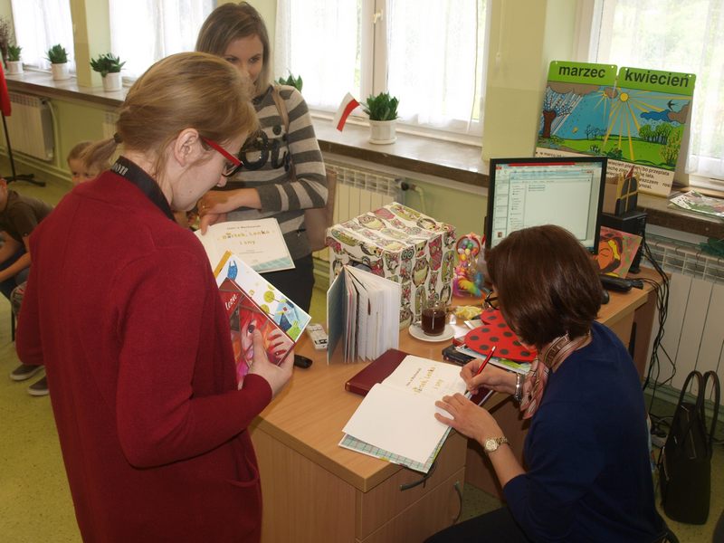 W ostatniej części spotkania dzieci zadawały pytania autorce, dowiedziały się też w ciekawy i przystępny sposób, jak powstaje książka. Był też czas na wspólne pamiątkowe zdjęcie oraz podpisywanie przez Joannę Wachowiak zakupionych przez uczestników zajęć książek.