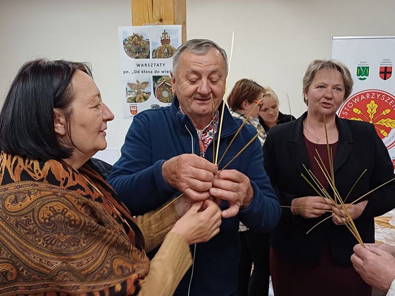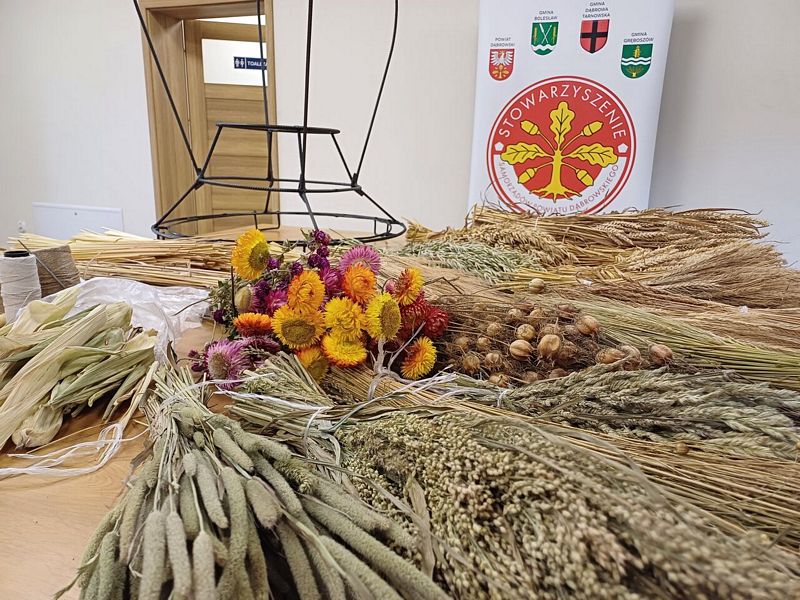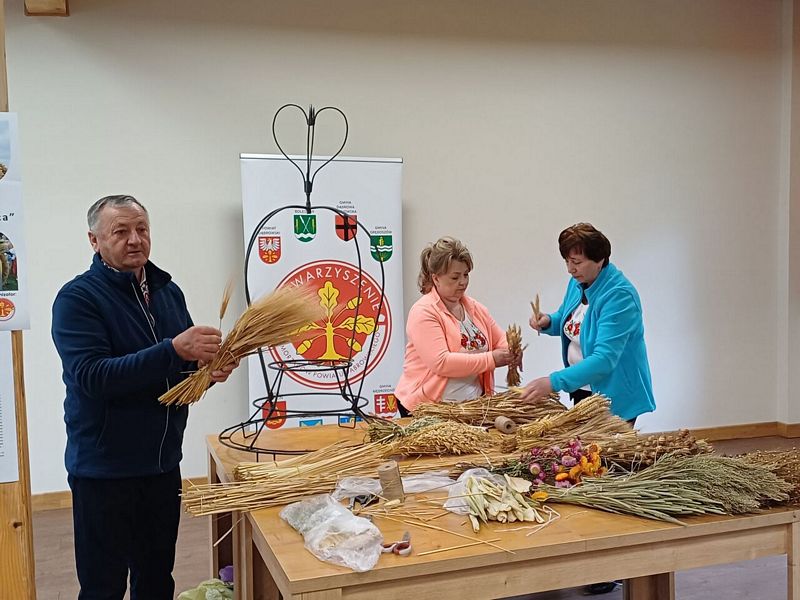 Warsztaty stanowiły nie tylko okazję do praktycznego poznania technik tworzenia wieńca dożynkowego, ale również moment integracji i wymiany doświadczeń pomiędzy uczestnikami. W serdecznej atmosferze, przy zapachu suszonych zbóż, ziół i kwiatów, powstawały pierwsze fragmenty tradycyjnych wieńców – symboli wdzięczności za plony i pracy rąk ludzkich.