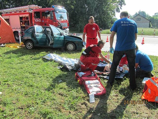 24 czerwca 2011 r. w ramach Narodowego Eksperymentu Bezpieczeństwa „Weekend bez Ofiar” w Dąbrowie Tarnowskiej na drodze krajowej nr 73 policjanci Wydziału Ruchu Drogowego z KP Policji w Dąbrowie Tarnowskiej wraz z Biurem Doradczo-Usługowym BHP p. Andrzej Dziedzic, Komendą Powiatową Państwowej Straży Pożarnej, Zespołem Opieki Zdrowotnej z Dąbrowy Tarnowskiej oraz Oddziałem Żandarmerii Wojskowej z Krakowa przeprowadzili praktyczne ćwiczenia działań ratunkowych na symulowanym wypadku drogowym.