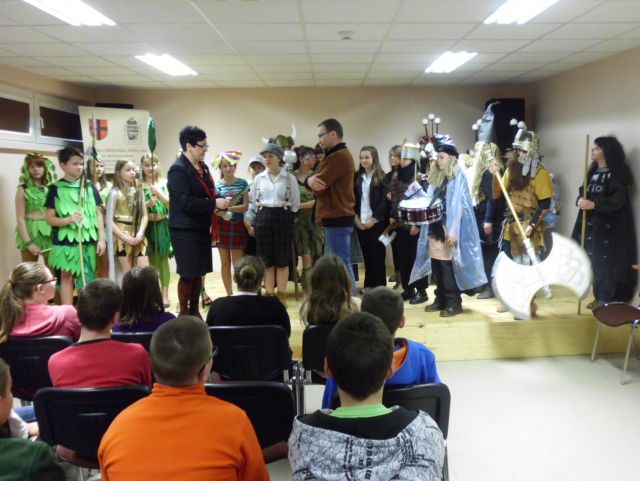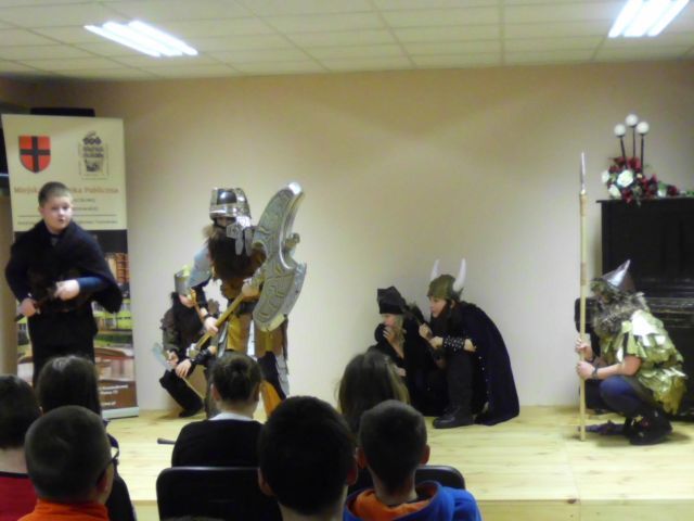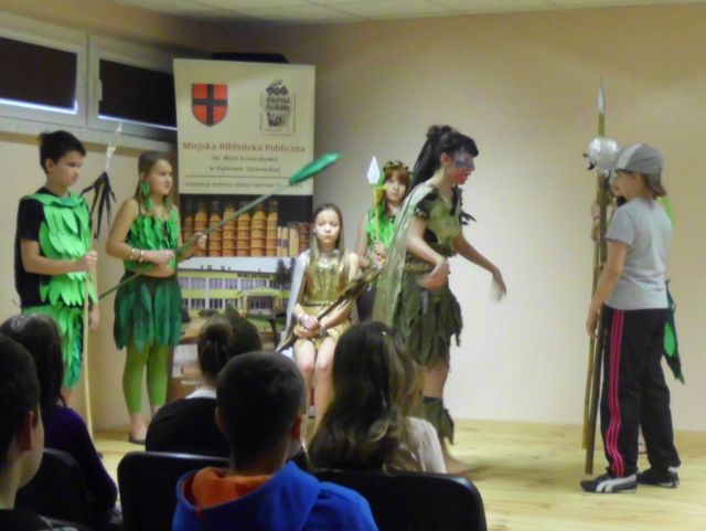 6 marca na scenie Miejskiej Biblioteki Publicznej im. Marii Kozaczkowej w Dąbrowie Tarnowskiej było głośno i wesoło, a to za sprawą występującej grupy teatralnej „Morrisy Króla Juliana” z Publicznej Szkoły Podstawowej nr 2 im. M. Kopernika w Dąbrowie Tarnowskiej.