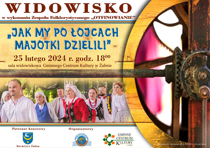 Gminne Centrum Kultury w Żabnie zaprasza na widowisko w wykonaniu Zespołu Folklorystycznego „Otfinowianie”.