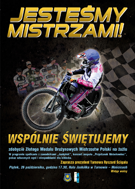 Okazja do spotkania tłumaczy się sama. Po raz trzeci w historii klubu żużlowcy z Tarnowa zdobyli tytuł Drużynowych Mistrzów Polski. Ekipa z Tarnowa była w tym sezonie zdecydowanie najlepsza. Wygrała rundę zasadniczą, w półfinale uporała się z zespołem z Torunia, w minioną niedzielę nie dała szans bardzo mocnemu zespołowi z Gorzowa Wielkopolskiego.