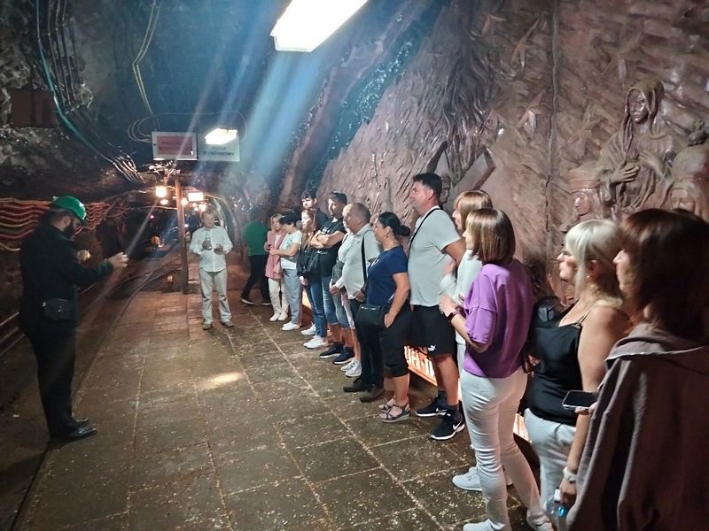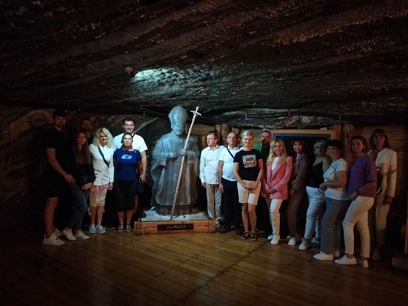 Ważnym punktem pobytu w Małopolsce było zwiedzanie Kopalni Soli w Bochni, która jest jednym z liderów turystycznych regionu województwa małopolskiego. Na trasie turystycznej o bogactwach skrywających się w solnych podziemiach opowiadał przewodnik.