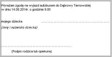 Dzieci uczestniczące bez rodziców muszą posiadać zgodę rodzica lub opiekuna prawnego: