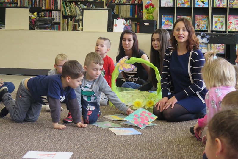 Zajęcia podczas marcowego Poranka z Bajką w Miejskiej Bibliotece Publicznej im. Marii Kozaczkowej, pozwoliły dzieciom z grupy „Biedroneczki” z dąbrowskiej Ochronki uścisnąć Panią Wiosnę, która przybyła do Oddziału dla Dzieci dzięki współpracy biblioteki z 6-24 Hufcem Pracy w Dąbrowie Tarnowskiej.