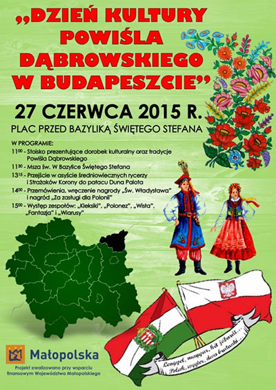 27 czerwca 2015 r. odbędzie się „Dzień kultury Powiśla Dąbrowskiego w Budapeszcie”, będący prezentacją tradycji i kultury regionu województwa małopolskiego i Powiśla Dąbrowskiego wśród mieszkańców Węgier.
