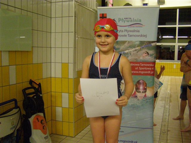 W kategorii przedszkolaków I miejsce zdobyła Amelia Liro – 12,5 m z czasem 24,62 stylem grzbietowym.