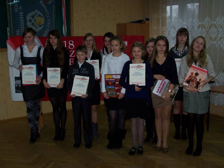 oraz 3 wyróżnienia: Anna Wąż (Luszowice), Weronika Kuta (Gimnazjum nr1 w DT) i Alicja Witek (Gimnazjum nr2 w DT);