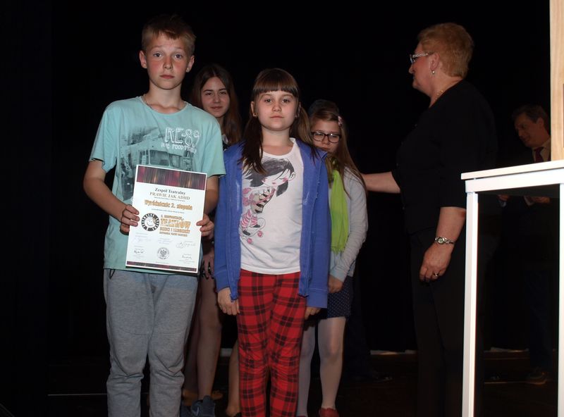 Grupa dziecięca „Prawie jak ADHD” otrzymała wyróżnienie 2.stopnia „za poszukiwanie króla, którym okazał się błazen” (spektakl „Gdzie jest król?”), młodzieżowa wyróżnienie 1.stopnia „za kamienne rozterki i marzenia” (spektakl „Kamienny Krąg”).