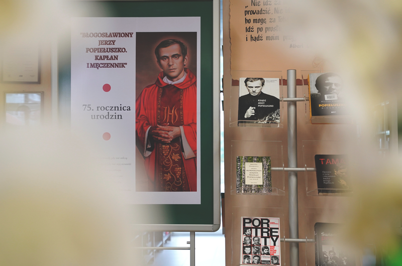 Na przygotowaną ekspozycję składają się publikacje dotyczące osoby kapelana: biografie, świadectwa, jego myśli, wywiady, kazania, a także wiersze pochodzące z antologii poezji poświęconej ks. Jerzemu Popiełuszce, w wyborze i opracowaniu ks. Wacława Buryły.