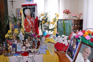 Na wystawie zgromadzone zostały pamiątki – dewocjonalia przywiezione z pielgrzymek do Watykanu oraz z pielgrzymek Błogosławionego Jana Pawła II do Polski i innych krajów świata.