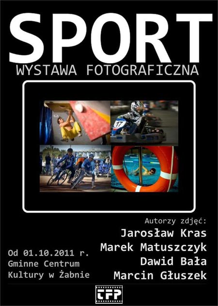 Towarzystwo fotograficzne POZYTYWni w Żabnie zaprasza serdecznie do obejrzenia wystawy, na której prezentowane są fotografie przedstawiające reportażowe podejście do różnych dyscyplin sportowych.