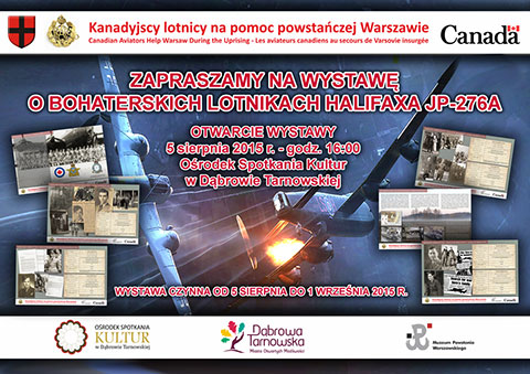 Wystawa „Kanadyjscy lotnicy na pomoc powstańczej Warszawie” przedstawia historię ostatniego lotu Halifaxa JP 276 A, zestrzelonego przez Niemców nad Dąbrową Tarnowską w nocy z 4 na 5 sierpnia 1944 roku oraz żmudną pracę specjalistów z Muzeum Powstania Warszawskiego nad identyfikacją szczątków samolotu oraz jej załogi kilkadziesiąt lat później. Wystawę przygotowała Ambasada Kanady we współpracy z Dr Piotrem Śliwowskim – Kierownikiem Działu Historycznego Muzeum Powstania Warszawskiego.