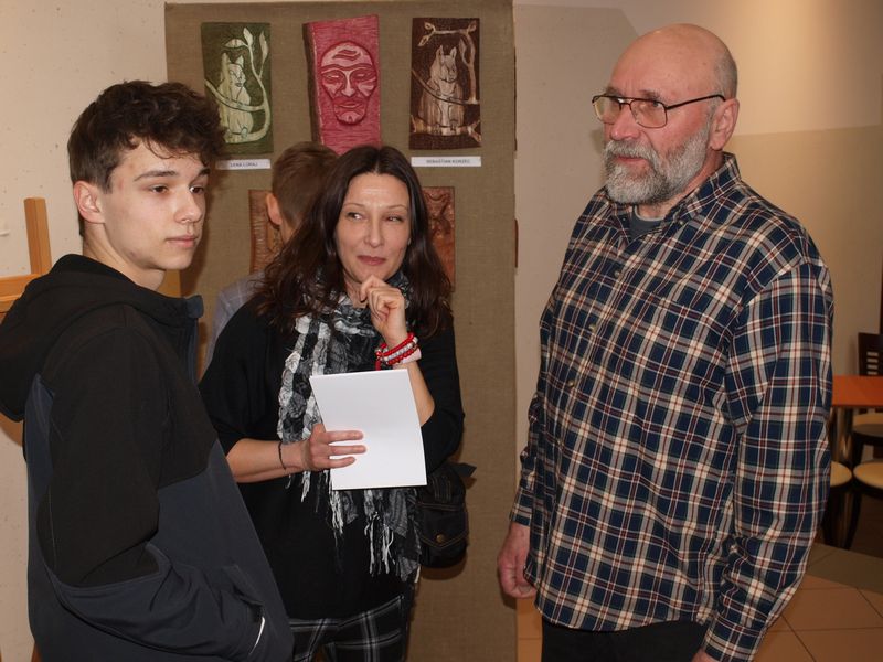W sobotę 4 marca odbył się wernisaż wystawy płaskorzeźb najmłodszych uczestników zajęć, podsumowujący rok pracy artystycznej. Kilkadziesiąt różnorodnych prac tematycznie obejmując: kwiaty, portrety, postacie sakralne, pejzaż zawisło w galerii DDK, dowodząc kunsztu i talentu młodych rzeźbiarzy. Paweł Chojnowski – Dyrektor DDK pogratulował młodzieży wspaniałych osiągnięć, podziękował nauczycielowi Stanisławowi Strońskiemu, adeptom sztuki, wręczając młodzieży okolicznościowe dyplomy. Młodzi ludzie otrzymali słodkie upominki. W zorganizowaniu i promocji wernisażu pomogła Paulina Bogula-Motyka – instruktorka plastyki prowadząca również w kole „Pastele” zajęcia z rękodzieła i malarstwa.