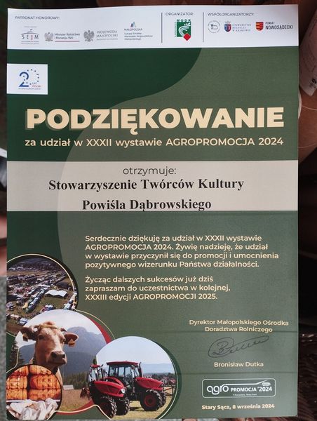 Już trzeci rok z rzędu Stowarzyszenie Twórców Kultury Powiśla Dąbrowskiego promuje Miasto i Gminę Dąbrowa Tarnowska oraz cały powiat dąbrowski, podczas Agropromocji.