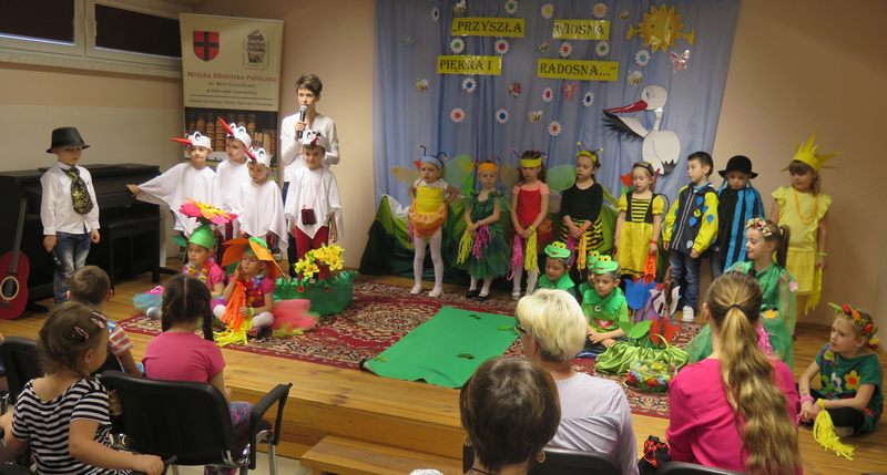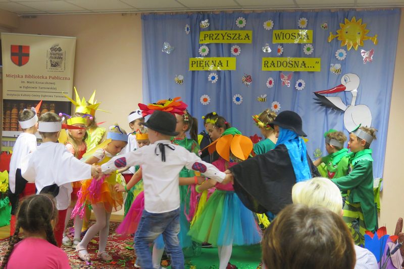 Wiosenne wierszowanie, muzykowanie i tańcowanie zgromadziło w piątek 20 kwietnia br. na Sali Audytoryjnej w Miejskiej Bibliotece Publicznej im. Marii Kozaczkowej w Dąbrowie Tarnowskiej grono przedszkolaków.