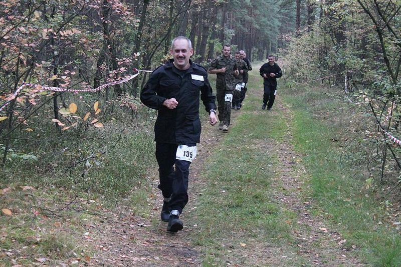 Pierwsze kilometry to asfalt, potem ścieżki leśne i przewężenia. Mundur nasiąknięty potem robi się coraz cięższy a oddech staje się coraz płytszy. Po około 4-5 km zaczyna prawdziwy bieg przełajowy: górki z wąskimi, stromymi ścieżkami wiodącymi raz w dół, raz w górę i tak kilkanaście razy. Taśmy trasy kierują na skraj skarpy gdzie czeka na uczestników zbieg. Trzeba być skoncentrowanym gdyż chwila nieuwagi na tej prawie pionowej ścianie grozi, że zaliczy się zjazd ale głową w dół. Po każdym kroku nogi zapadają się w piasku do kolan wyciągnięcie ich wzmaga zmęczenie, utratę sił i w co trzecim zawodniku rodzi się zniechęcenie do dalszego. Mimo to ponad 500 zawodników dotarło na metę.