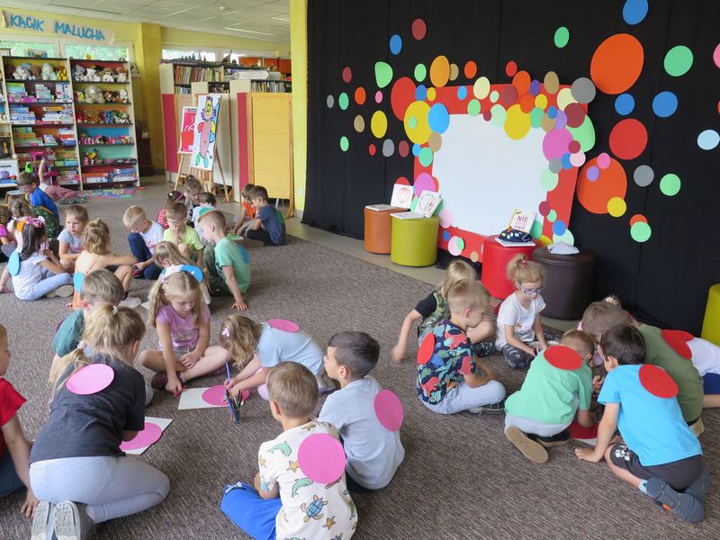 Oddział dla Dzieci Miejskiej Biblioteki Publicznej w Dąbrowie Tarnowskiej zakończył właśnie majowo-czerwcową akcję literacką pt. „Zabawy z książką i kropką” zainagurowaną w XXI Ogólnopolskim Tygodniu Bibliotek.