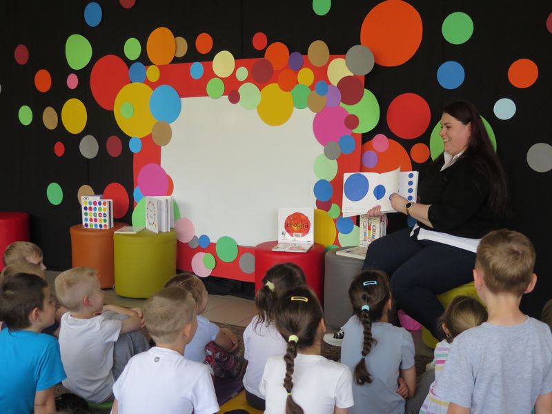 Wraz z „Biedronkami” z dąbrowskiego Przedszkola nr 2 sięgnięto podczas „zabaw z książką i kropką” po nowoczesne lektury, które zachęcają dzieci do wspólnego czytania.