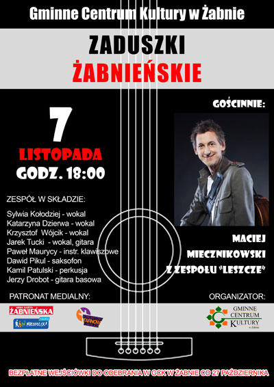 Gminne Centrum Kultury w Żabnie serdecznie zaprasza do udziału w tegorocznych zaduszkach – tradycyjnym koncercie poświęconym pamięci zmarłych twórców sceny muzycznej.