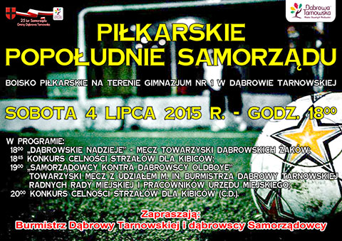 Do niezwykłej rywalizacji sportowej, która mamy nadzieję na długo utkwi w świadomości widzów i uczestników, dojdzie już w najbliższą sobotę 4 lipca o godzinie 18:00 na boisku piłkarskim Gimnazjum Nr 1 w Dąbrowie Tarnowskiej. Zaplanowano bowiem w tym dniu rozegranie „Piłkarskiego Popołudnia Samorządu”. W ramach sportowej rywalizacji o 18:00 zaprezentują się nasze nadzieje piłkarskie, tj. najmłodsi adepci „kopanej” z grupy Żaków w meczu towarzyskim.