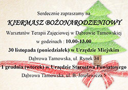 Stowarzyszenie „Pomocna Dłoń”zaprasza na te kiermasze i już dzisiaj wyraża wdzięczność wszystkim tym, którzy zechcą wesprzeć działalność WTZów poprzez dokonanie zakupu ozdób świątecznych. Środki ze sprzedaży przeznaczone zostaną na organizację imprez oraz wyjazdów integracyjnych.