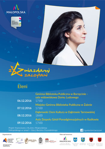 Miejska Biblioteka Publiczna zaprasza w czwartek 8 grudnia br. o godz. 18:00 na koncert Eleni, który odbędzie się w Dąbrowskim Domu Kultury.