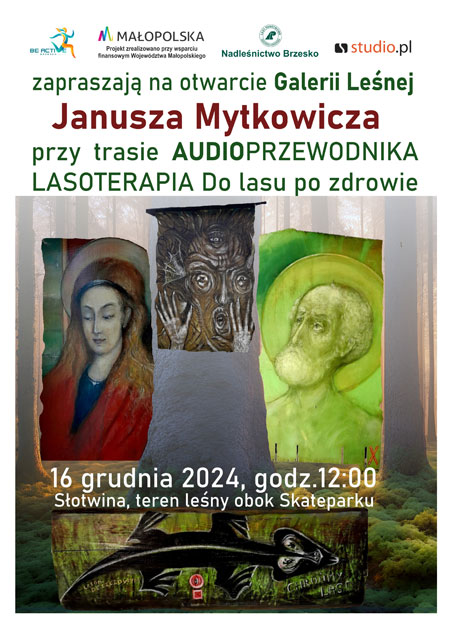 Janusz Mytkowicz urodził się w Brzesku, studiował w Accademii di Belle Arti w Rzymie. Jego dzieła, rzeźby, rysunki i obrazy znajdują się w prywatnych kolekcjach na całym świecie. Artysta posługuje się biegle wieloma technikami. Choć w jego twórczości dominuje tematyka sakralna, mitologiczna i historyczna, maluje też portrety psychologiczne i abstrakcje. Jest twórcą Leśnej Galerii w Okocimiu Górnym. Do tej metody ekspozycji będzie nawiązywać Leśna Galeria na Słotwinie, by zaoferować odbiorcom kontemplację sztuki na łonie natury, w nieco łatwiej dostępnym terenie. Dodajmy, że inauguracja Audioprzewodnika poświęconego lasoterapii, który w partnerstwie z Nadleśnictwem Brzesko realizuje Studio.pl, ma nastąpić na wiosnę – w kwietniu przyszłego roku.