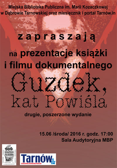 Miejska Biblioteka Publiczna im. Marii Kozaczkowej w Dąbrowie Tarnowskiej zaprasza na promocję drugiego, poszerzonego wydania książki Zygmunta Szycha – „Guzdek, kat Powiśla” oraz filmu dokumentalnego.