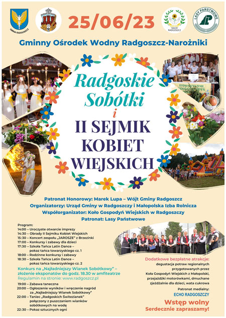 Rozpoczynamy odliczanie do tegorocznych Radgoskich Sobótek (25.06. godz. 14:00), którym będzie towarzyszyć II Sejmik Kobiet Wiejskich oraz szereg dodatkowych atrakcji.