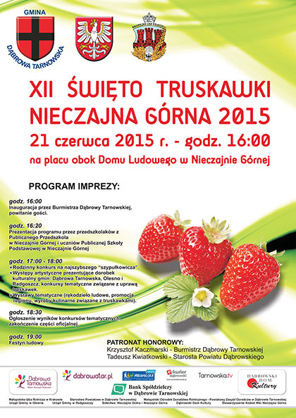 Wśród organizatorów i patronów imprezy należy wymienić: Urząd Miejski w Dąbrowie Tarnowskiej, Sołectwa: Nieczajna Dolna i Nieczajna Górna, Stowarzyszenie Kobiet Wsi Nieczajna Górna, Urząd Gminy w Radgoszczy, Urząd Gminy w Oleśnie, Starostwo Powiatowe w Dąbrowie Tarnowskiej, Dąbrowski Dom Kultury, Małopolska Izba Rolnicza, Bank Spółdzielczy w Dąbrowie Tarnowskiej, Małopolski Ośrodek Doradztwa Rolniczego – Powiatowy Zespół Doradców w Dąbrowie Tarnowskiej, RDN Małopolska, E-Kurier Dąbrowski, Tarnowska.tv. Wszystkie te instytucje zapraszają do licznego uczestnictwa w XII Święcie Truskawki, podczas którego nie zabraknie truskawkowych potraw, przysmaków oraz dobrej zabawy.